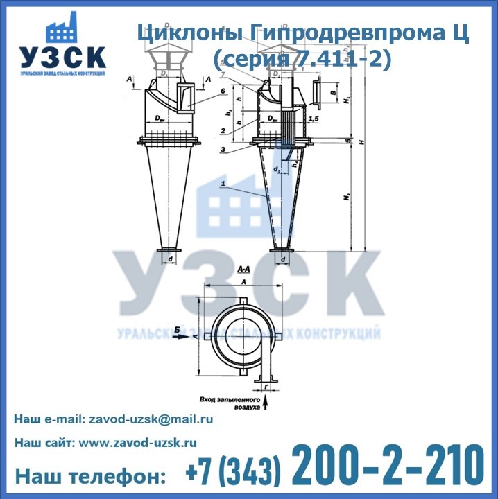 Циклоны Гипродревпрома Ц (серия 7.411-2) высокого качества можно купить в компании «УЗСК» в Павлодаре. Наши специалисты предоставят всю необходимую информацию информацию и помогут с выбором модели циклона. Подробные технические характеристики, конструкцию, параметры, ассортимент и стоимость продукции можно также найти на сайте УЗСК.