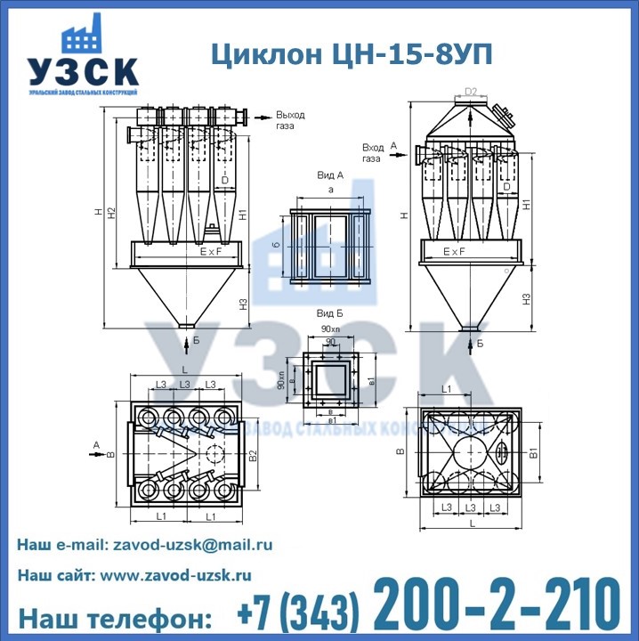 Завод «УЗСК» в Павлодаре предлагает большой выбор циклонов ЦН-15-500×8УП и прочих устройств, полностью укомплектованных и готовых к эксплуатации. Мы гарантируем соответствие оборудования всем требованиям ГОСТ и ТУ, износостойкость и высокую производительность предлагаемого оборудования. Уральский Завод Стальных Конструкций изготавливает и продает надежное, эффективное и производительное оборудование, имеющее длительную гарантию и большой эксплуатационный ресурс. Если требуется изготовить циклон нестандартных размеров, то такой вариант выполнения заказа тоже предусмотрен, так как предприятие имеет собственные производственные площади и надежных поставщиков. На все поставляемое или производимое оборудование имеются чертежи и прочая техническая документация. Заказать и купить циклоны или прочее оборудование высокого качества и по доступной цене можно через наш сайт или по указанному в разделе «Контакты» телефону.
