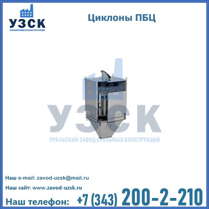Завод «УЗСК» в Павлодаре предлагает приобрести циклоны ПБЦ и прочие устройства, полностью укомплектованные и готовые к эксплуатации. Мы гарантируем соответствие оборудования всем требованиям ГОСТ и ТУ, износостойкость и высокую производительность предлагаемого оборудования. Уральский Завод Стальных Конструкций изготавливает и продает надежное, эффективное и производительное оборудование, имеющее длительную гарантию и большой эксплуатационный ресурс. Если требуется изготовить циклон нестандартных размеров, то такой вариант выполнения заказа тоже предусмотрен, так как предприятие имеет собственные производственные площади и надежных поставщиков. На все поставляемое или производимое оборудование имеются чертежи и прочая техническая документация. Заказать и купить циклоны или прочее оборудование высокого качества и по доступной цене можно через наш сайт или по указанному в разделе «Контакты» телефону.