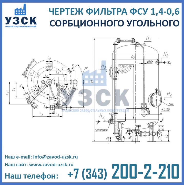Если вы ищете фильтры ФСУ-1,4-0,6 в Павлодаре от изготовителя, то Вы на правильном пути! Уральский завод стальных конструкций – непосредственный производитель сорбционных фильтров ФСУ, предлагающий самые выгодные цены на ФСУ-1.4-0.6 в Павлодаре. По окончании процесса производства угольные фильтры проходят гидравлические испытания пробным давлением 0,9 МПа на аттестованном гидростенде, находящимся в собственности завода УЗСК. Мы гарантируем высокое качество выпускаемой продукции, и в этом уже убедились ведущие предприятия промышленного сектора России и стран ЕАЭС (см. раздел «Наши клиенты»).